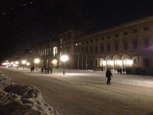 はーい、オデオン広場からホフガルテンにはいり、ヘラクレスザールの正面玄関へ。完璧、天然冷凍庫でっせ!雪がずーっとパウダーのまま。